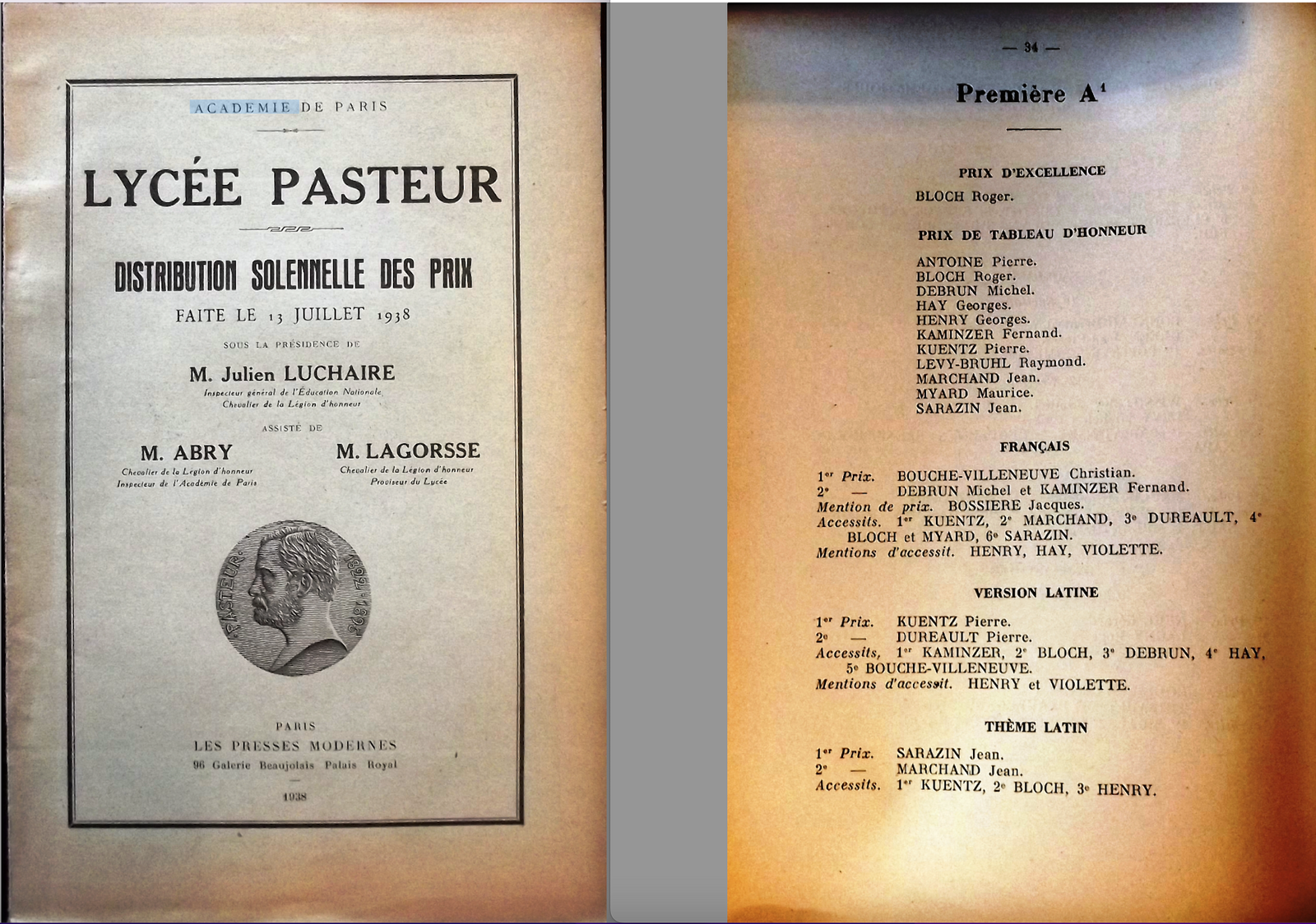 Il est à noter que l’élève Bouche-Villeneuve aura de bien meilleurs résultats lors de sa seconde Première, puisqu'il obtiendra un 1er Prix de Français et un 5ème accessit en version latine2.