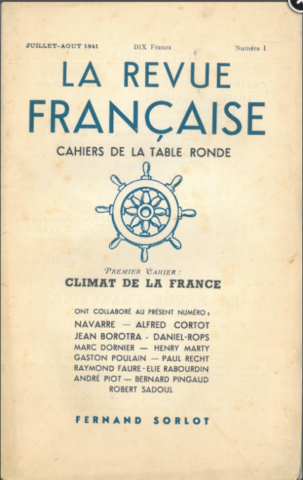 - "Pensée et mouvement. Manifeste des Cahiers de la Table Ronde, La Revue française, n° 1 (juillet-août 1941), p. 7-11 (sous le pseudonyme de Marc Dornier)