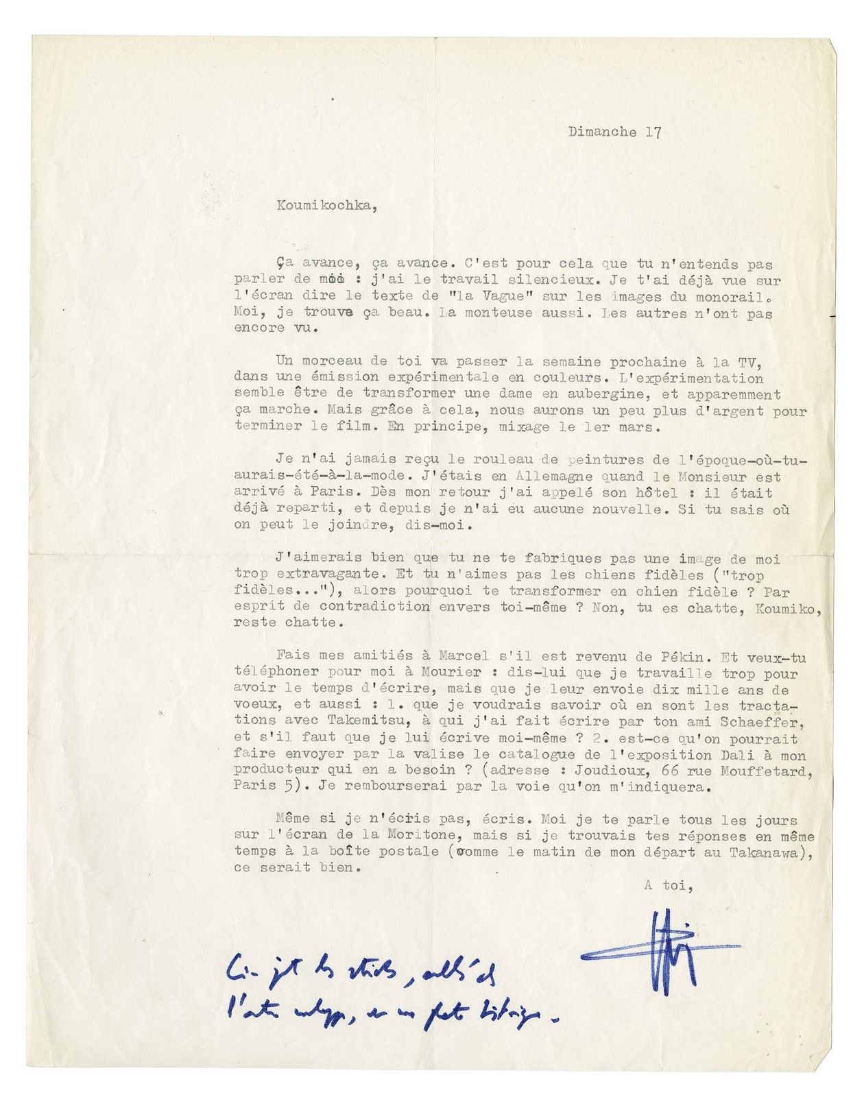 Une lettre adressée à Kumiko Muraoka, héroïne du Mystère Koumiko (1965), est réapparue dans une interview accordé par sa fille Anne Dubosc, au magazine web Purple Diary (n° 26 / fall - winter 2016).