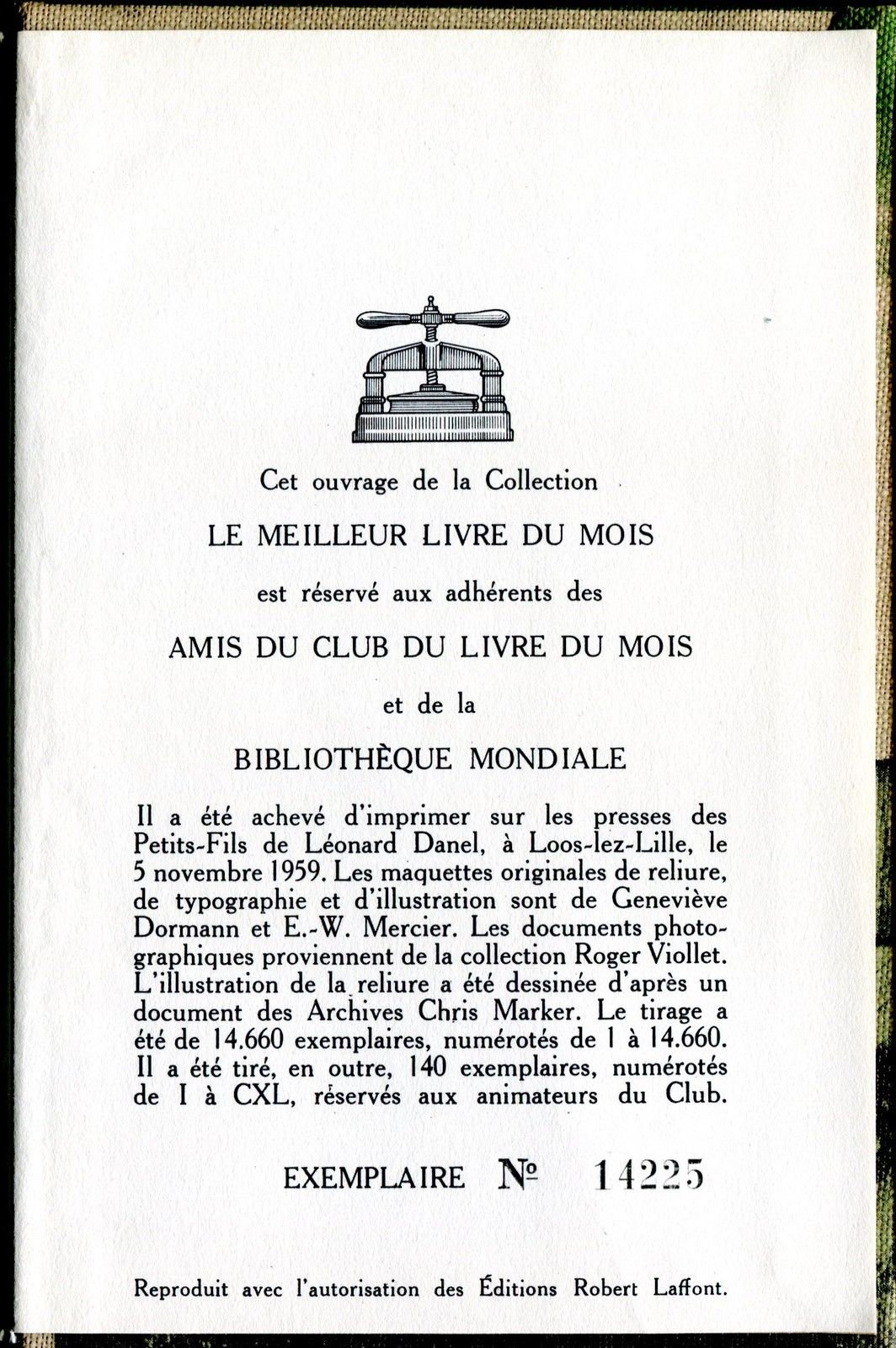 Les illustrations 2, 3, 4, 5, 6, 7, 12, 13 et 23, dans le "portefolio" intégré entre les pages 130 et 131, sont référencées "Snark international / archives Chris Marker".